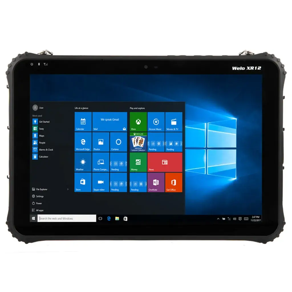 Powered by Intel Cherry Trail© or Intel Core Skylake m3-6Y30 processors, with storage options of 64GB or 128GB, the tablet operates on Microsoft Windows 10 (Pro and Enterprise IoT options available). It provides excellent connectivity with WiFi, Bluetooth, 4G, and GPS. Optional features include barcode scanning, NFC, RFID, and a fingerprint scanner for added functionality.